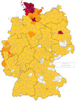 Verbreitung des Namens: Da Hans dort ein beliebter Name war, ist der Familienname Hansen in Deutschland nirgends so oft zu finden wie im Norden Schleswig-Holsteins (siehe die Karte mit der Verbreitung des Namens Hansen).