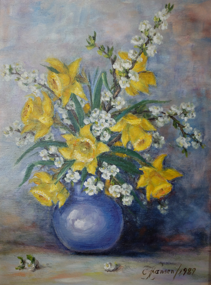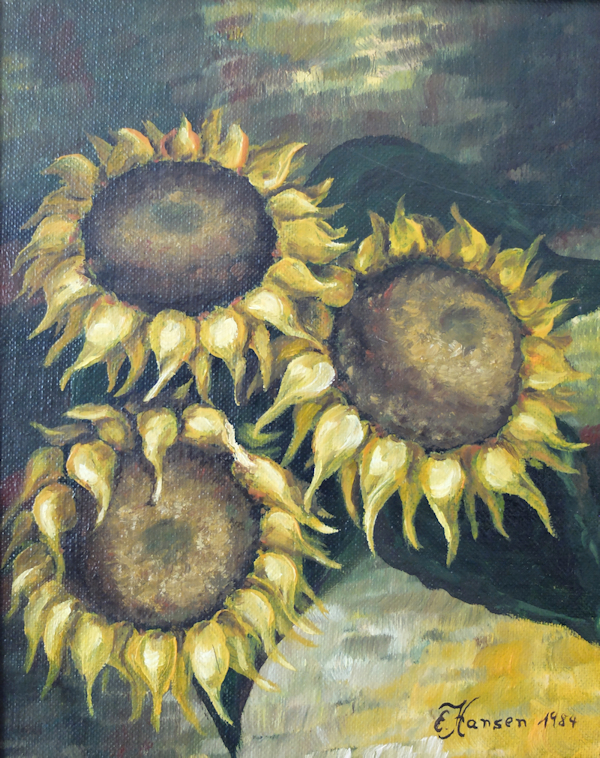 In der Zeit in Ettlingen beginnt Eva Hansen mit der Hobby-Malerei. Zunächst mit Bauernmalerei und Ikonenmalerei und schließlich allgemein Ölmalerei, die sie bis kurz vor ihrem Lebensende ausübt.